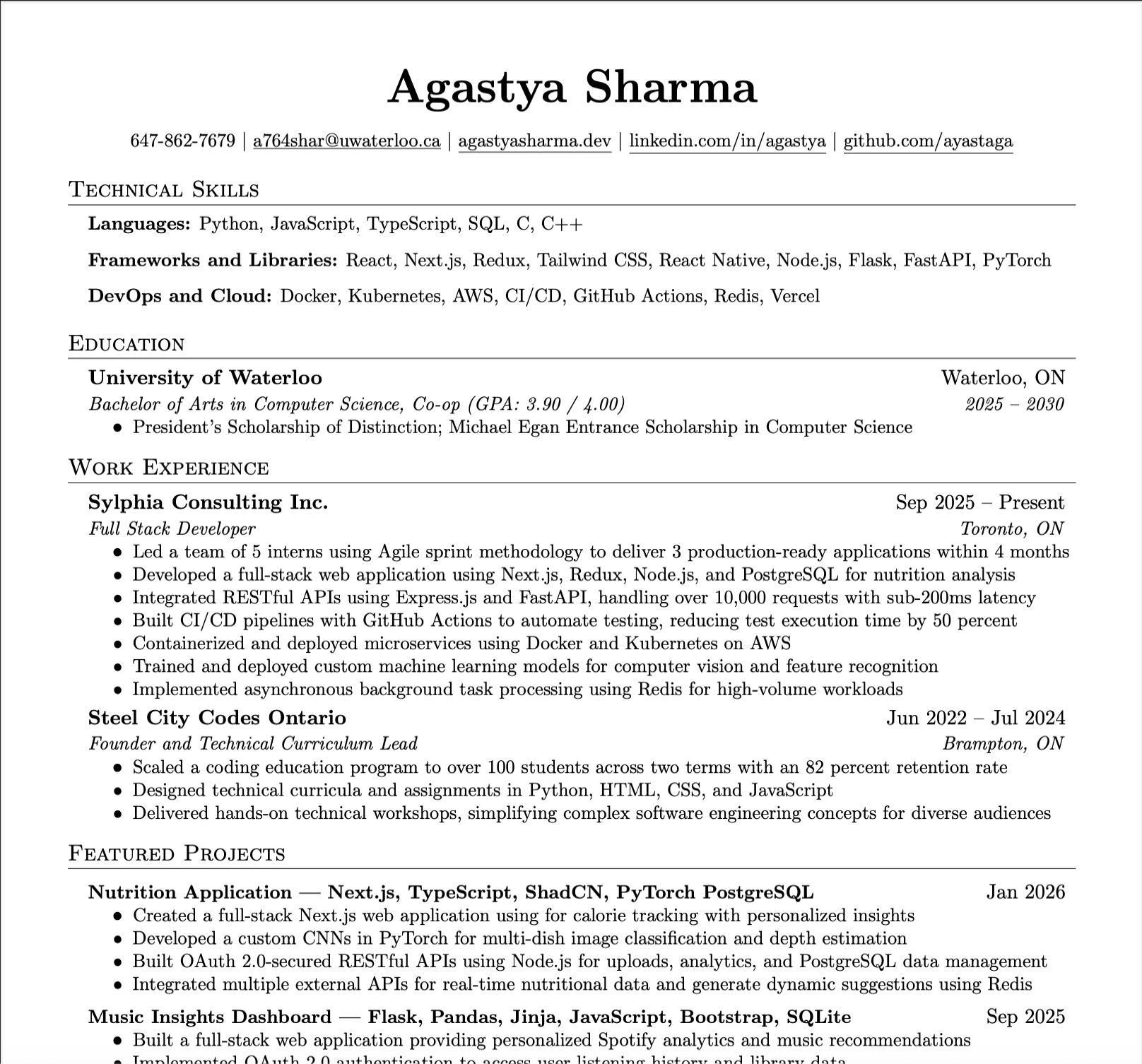 I'm a 1st year CS student @ the University of Waterloo. I'm a full-stack software engineer & product designer based in Toronto.